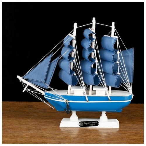 Корабль сувенирный малый "Аскольд", борта голубые с полосой, паруса голубые, 23,5x4,5x23 см