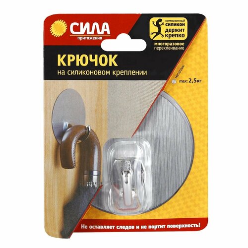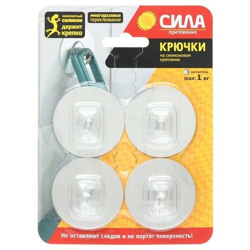 Крючки сила на силикон. крепл. 5 Ø, серебро, до 1 кг, 4 шт 9692347
