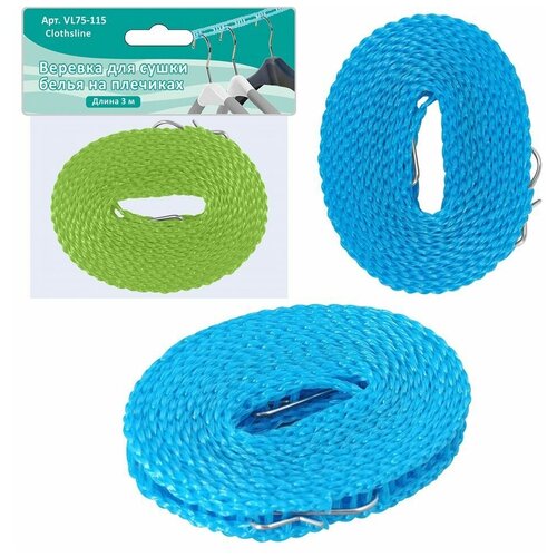 Веревка для сушки белья на плечиках. Длина 3м. 2цв.