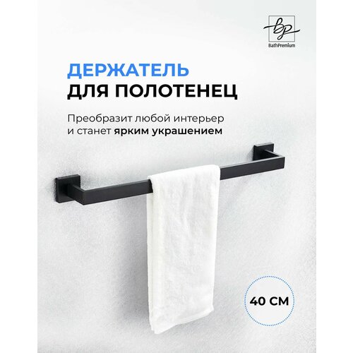 Держатель для полотенец Brion черный матовый, 30 см / Полотенцедержатель из нержавеющей стали для ванной и кухни