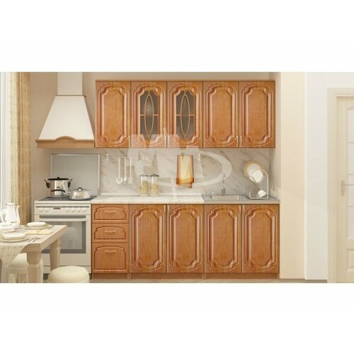 Кухонный гарнитур 2400 Хельга с пеналом, цельная столешнциа, МДФ Олива Софт