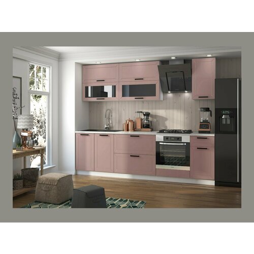 Кухня МДФ 2000 Монако Компоновка №2 + ШНВТ600 (Шарли пинк, Белый)