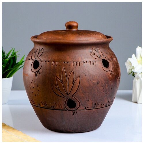 Кунгурская керамика Банка для хранения лука Глазурь, 4 л, 4000 мл, 9.5x9.5x29 см