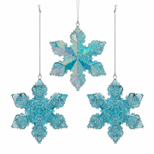 Kurts Adler Набор елочных игрушек Снежинки - Crystal Blue 8 см, 3 шт, подвеска *