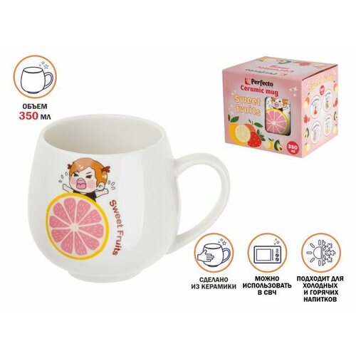 Кружка керамическая, 350 мл, Sweet fruits, грейпфрут, PERFECTO LINEA (17-301112)