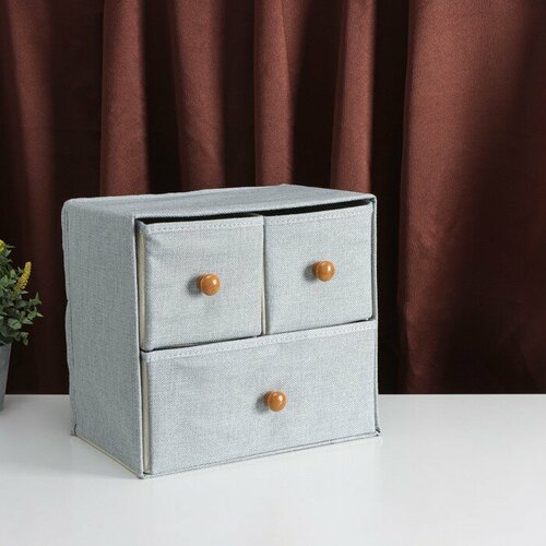 Короб LaDо́m «Франческа», 3 выдвижных ящика, 30×20×28 см, цвет серо-голубой