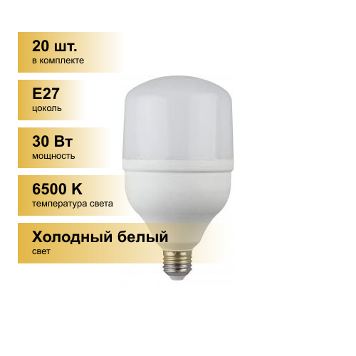 (20 шт.) Светодиодная лампочка ЭРА стандарт высокомощн. E27 30W(2400lm) 6500K 6K 180x100 POWER T100-30W-6500-E27 2972