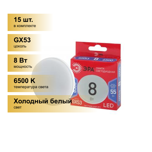 (15 шт.) Светодиодная лампочка ЭРА ECO GX53 8W(640lm) 6500K 6K 22х75 GX-8W-865-GX53 5642
