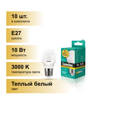 Лампочка светодиодная Camelion, LED G45 10Вт 220В, цоколь Е27, теплый свет 3000К, 1 шт.