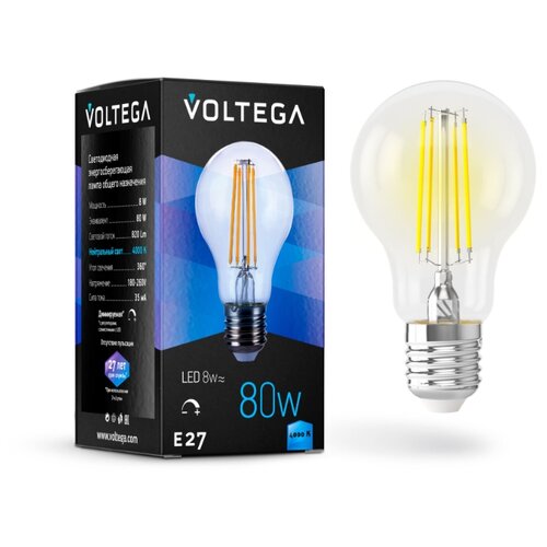 Светодиодная лампа VOLTEGA ЛОН диммируемый Е27 4000К 8W 5490 16183483