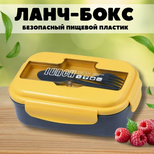 Контейнер разделен на два отсека, что позволяет хранить разные виды продуктов. В комплекте с ланч-боксом идут столовые приборы - ложка и вилка, что делает его еще более функциональным.