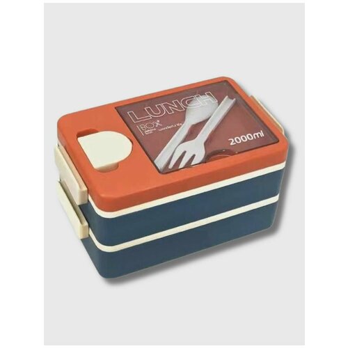 Ланч-бокс с отделениями и столовыми приборами, синий