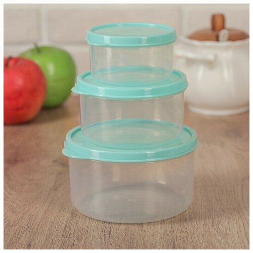 Набор контейнеров пищевых круглых , 3 шт: 150 мл, 300 мл, 500 мл, цвет бирюзовый