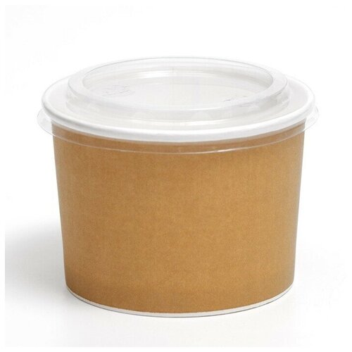 Контейнер круглый, с пластиковой крышкой, крафт, 250 мл