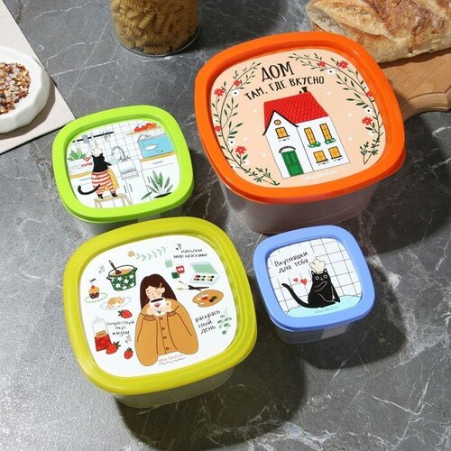 FoodVibes Набор контейнеров «Домашний уют», 4 шт: 230 мл, 500 мл, 900 мл, 1550 мл