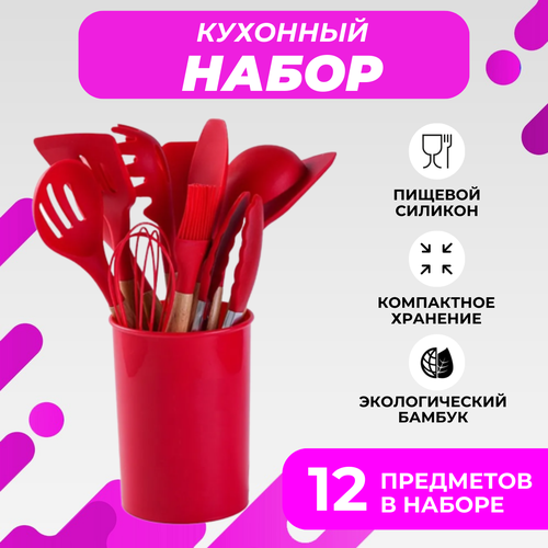 Набор кухонных принадлежностей из бука и силикона, 12 предметов -