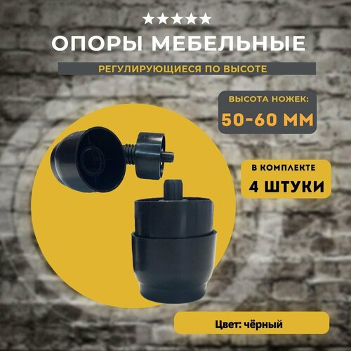 Опоры мебельные, регулирующиеся по высоте, Н 50-60 мм, 4 шт