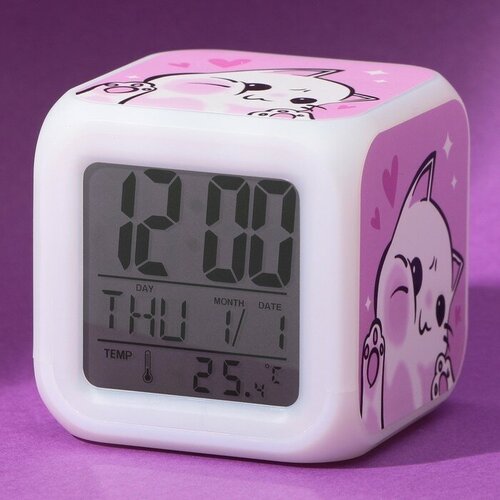 Электронные часы-будильник «Котик», с подсветкой