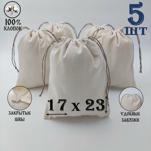 Хлопковый мешочек с джутовыми завязками 17 на 23 см./ 5 шт./ упаковка для подарков и хранения