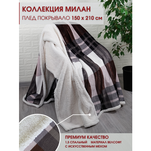 Плед на кровать двусторонний с мехом Милан 2149 / 150х210 см