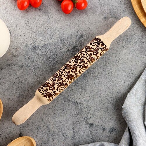 Резная скалка с узорами "Утренняя роса" для выпечки, бук, 40 мм × 350 мм