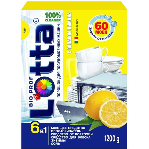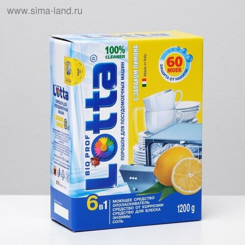 Порошок для посудомоечных машин Lotta "6 в 1" с запахом лимона, 1,2 кг