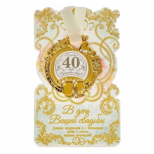 Lucky Медаль свадебная на открытке "Рубиновая свадьба", 8,5 х 8 см