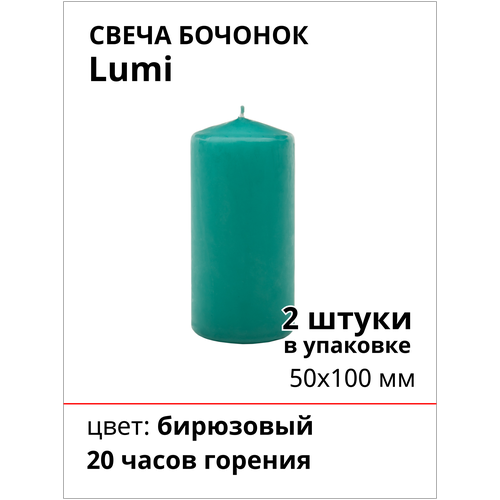 Свеча Бочонок Lumi 50х100 мм, цвет: бирюзовый, 2 шт.