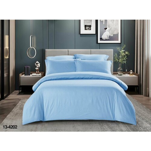 LUXOR КПБ Сатин-страйп "Luxor" диз. № Полоса 1х1 Голубая Лагуна (13-4202) 2,0-сп. с европростыней