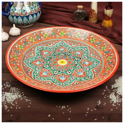 Ляган Риштанская Керамика "Цветы", 42 см, оранжевый
