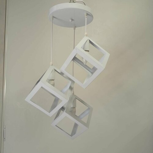 Светильник подвесной потолочный LOFT 3хЕ27 220v Куб белый Круглое основание