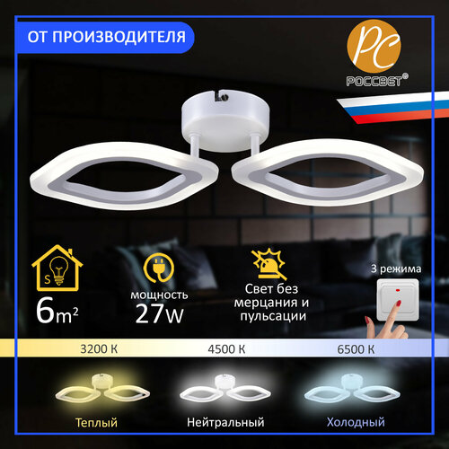 Люстра светодиодная, светильник потолочный россвет РС23117/2, 2*LED 27 Вт