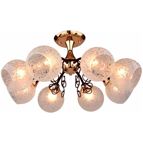 Материал плафона: стекло-Материал основания светильника: металл **Преимущества:**- Гарантия на электрическую часть светильника 36 месяцев- За счёт своего компактного размера, подходит для невысоких потолков- Плафоны, направленные в разные стороны, создают рассеянное ровное освещение и неповторимую игру света;- Светильник идеально впишется в интерьер гостиной, спальни, студии;- Актуален в качестве основного света или композиции декоративного освещения;