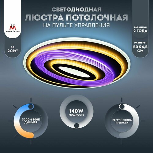 белыйЛюстра потолочная светодиодная на пульте для гостиной, для спальни, в детскую комнату, люстра потолочная на кухню с подсветкой RGB Maestro De Luce MD