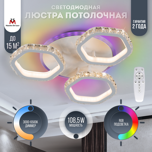 Цены на Люстра потолочная светодиодная с пультом и подсветкой RGB, светильник потолочный LED MDL83009 белый в г. Москва
