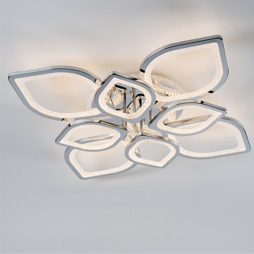 Люстра имеет компактные размеры – длина 42,5 см, ширина 42,5см, высота 8,5 см – что будет идеальным решением для комнат с низкими потолками.