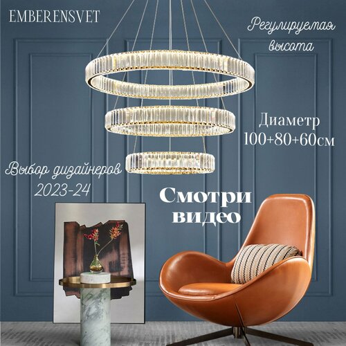 Люстра потолочная хрустальная из трёх колец для гостиной