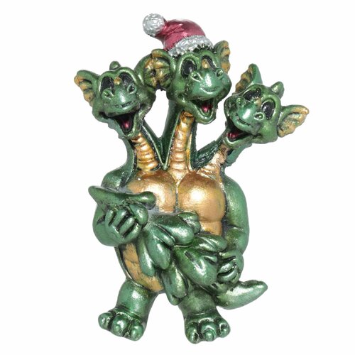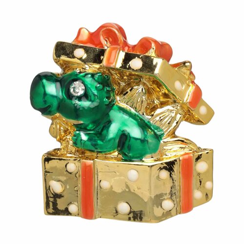 (W)Магнит, 6 см, полирезин, зелено-золотистый, Дракончик в подарке, Dragon baby