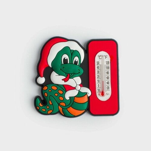 Магнит с градусником, 5 см, ПВХ/стекло, зеленый, Змея в шапке, Snake cute