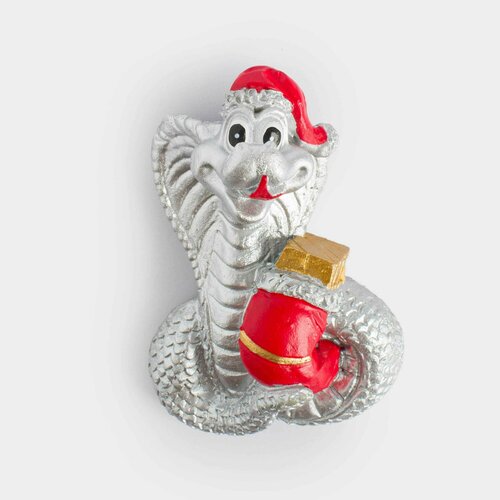 Магнит, 7 см, полирезин, золотистый, Змея в белой шапке, Snake cute
