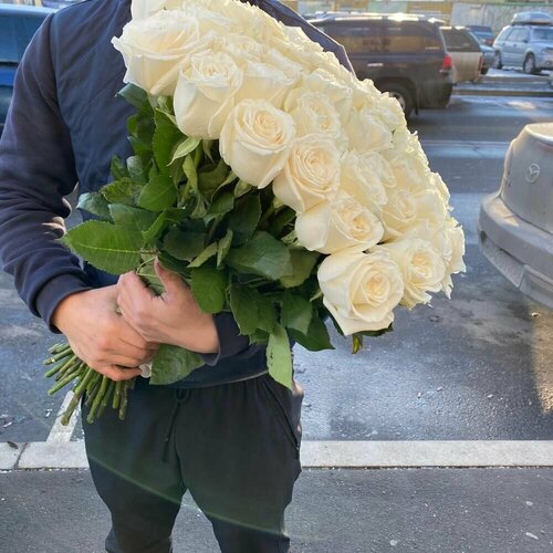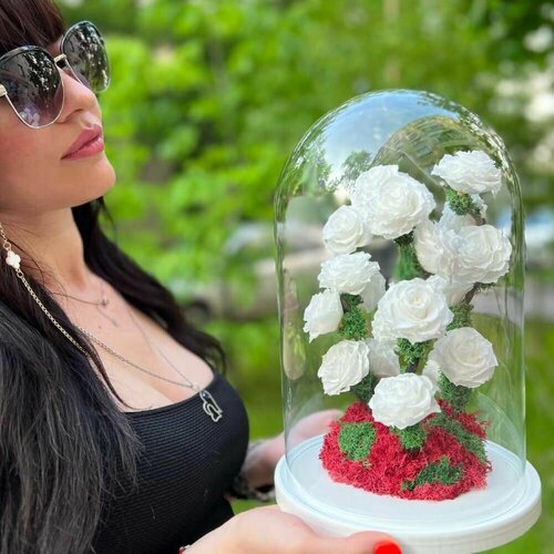Композиция Облако нежности из белоснежных роз в стекле /32 см