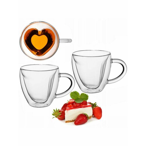 Набор чашек из двухслойного стекла 250 мл. 2 шт. (сердечко)