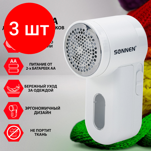 Комплект 3 шт, Машинка для удаления катышков с аккумулятором с широкой рабочей поверхностью SONNEN FS-9989, 455467
