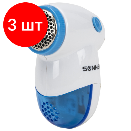 Комплект 3 шт, Машинка для удаления катышков миниклинер SONNEN FS-8809, белый/голубой, код 1С, 455465