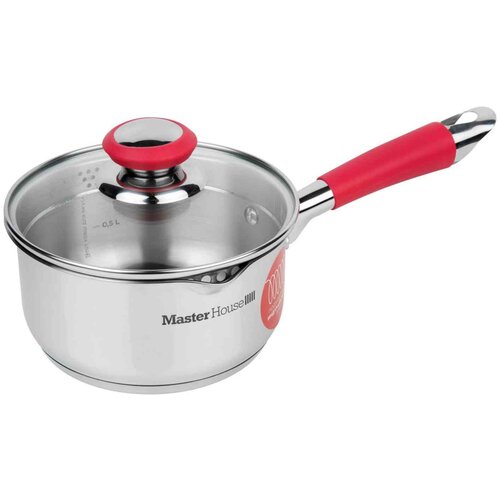 Кастрюля нержавеющая Master House Rosse-2,3 со стеклянной крышкой 18 см, силиконовыми ручками, объемом 2,3 литра.