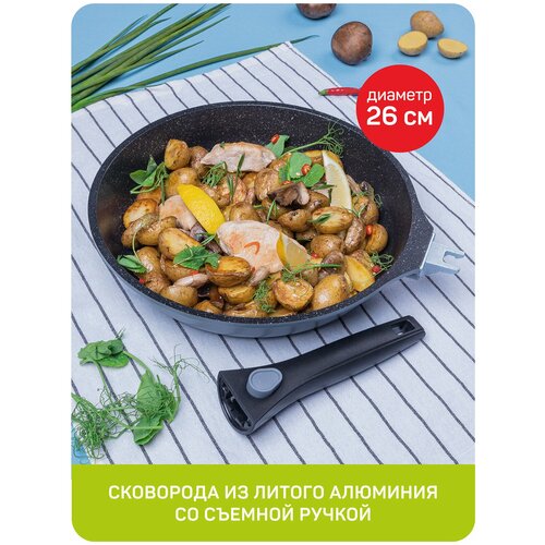 Сковорода из литого алюминия с антипригарным покрытием и съемной ручкой Шеф Леоне 26см