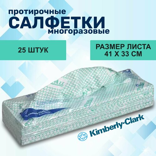 Протирочные салфетки Kimberly-Clark WypAll Х80 7566, листовые, 25 шт, 1 слой, 41 33.5 см, зеленые