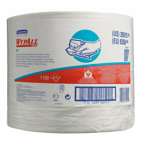Материал протирочный нетканный WYPALLxX50LROLLWH1P1X1100 34х24,9см бел.8356 , 1 шт.