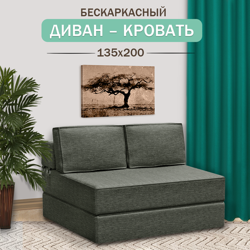 Диван, кровать бескаркасный, книжка 140х200 см коричневый, Ramelka Mattress