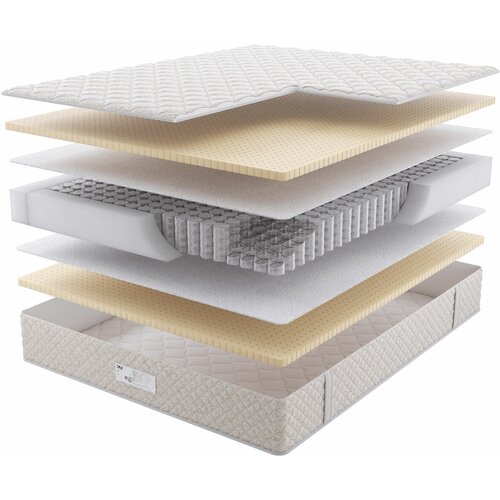 Беспружинный матрас «сэндвич», состоит из чередующихся слоев мягкого натурального латекса и жесткого кокоса. В центр матраса добавлен блок из экопены ППУ, средней жесткости. Матрас, набранный из таких слоев имеет умеренную среднюю жесткость по всей своей глубине, плотный и упругий на сжатие при нагрузке. Данная модель является идеальным вариантом, если вы ищете детский матрас или матрас для подростка.